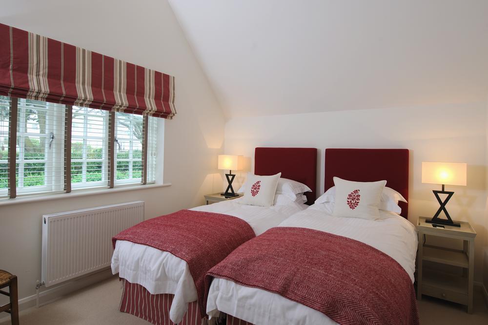 A tranquil room with garden views on all three sides and beautifully furnished with luxurious sofas and arm chairs. There are built in bookshelves with a Sonus speaker system. In one half of the room there is an attractive Cornish slate fireplace with an open fire (and fireguard).The other half of the room features a wall hung flat-screen television, DVD player and Sky+ HD package.