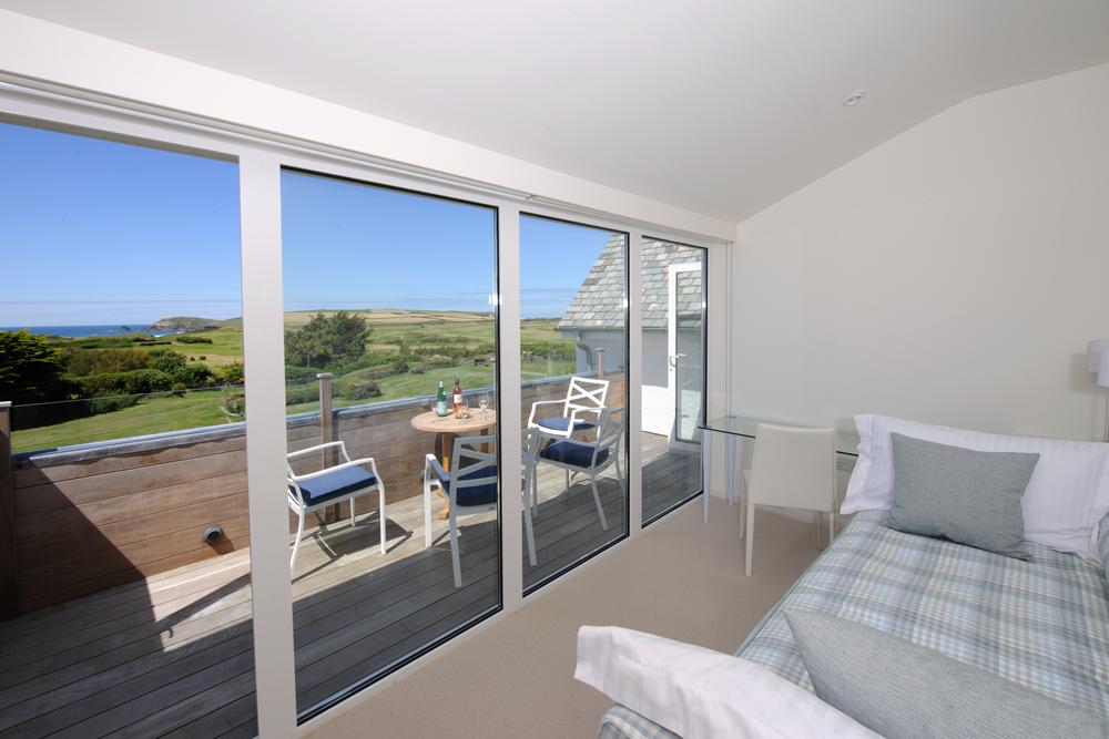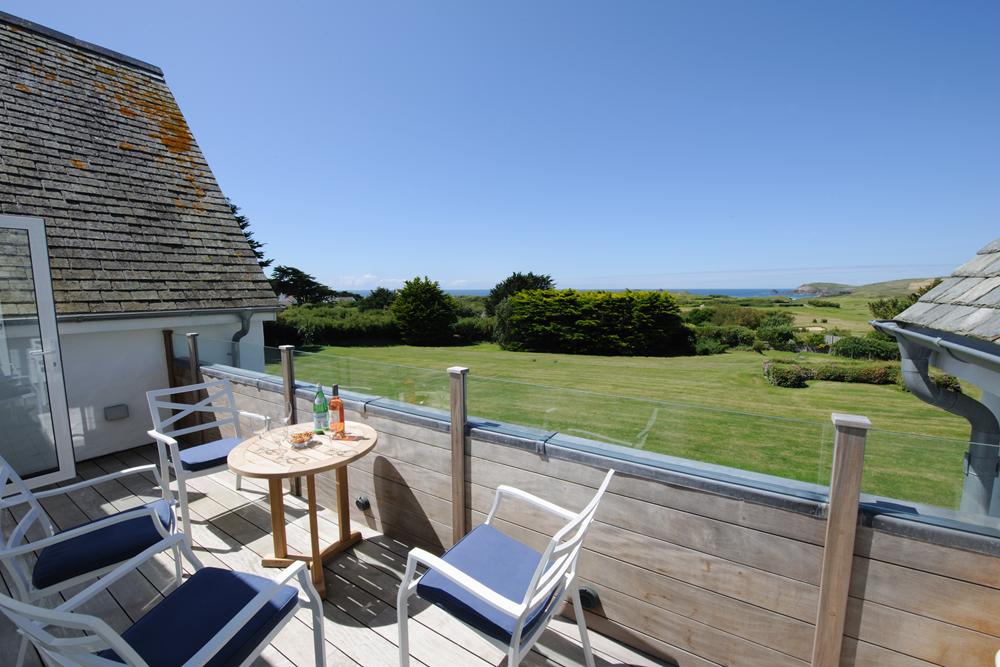 Also accessed from the landing. Spectacular views across the golf course to Trevose Head. A sheltered spot with table and chairs.