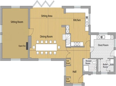 It has a wood floor and an oak dining table seating up to 12 people. A deep comfortable sofa and arm chairs are perfectly positioned for enjoying the view. There is a Sonus speaker system. In winter there is under-floor heating.